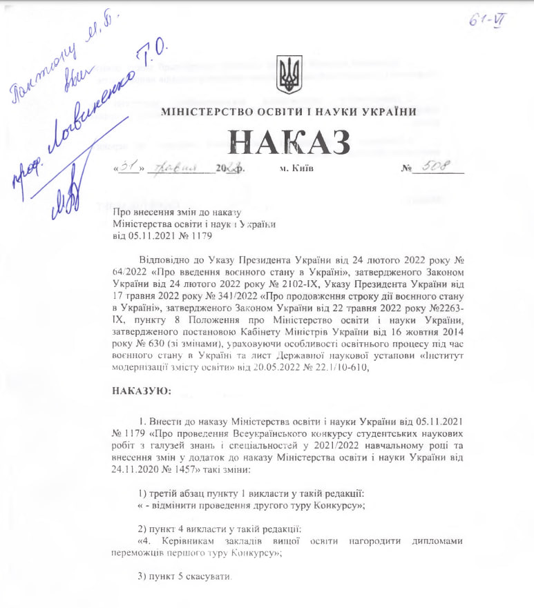 Зміни у проведенні другого туру ВКСНР включають у себе відміну проведення другого туру Конкурсу з урахуванням складної обстановки та нагородити дипломами переможців першого туру Конкурсу ПЕРКОВУ Орину та НИКИТЧУК Катерину.