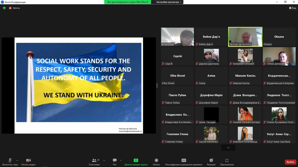10 листопада 2022 року, в межах навчальної дисципліни «Ресурси соціальної роботи», магістри ОП «Соціальна робота» долучилися до майстер-класу, який проводив Герман де Меннінк — голландський ст. викладач соціальної роботи, психолог-травматолог, психотерапевт, міжнародний експерт і автор підручника «Набір інструментів соціальних працівників» (Routledge 2017).