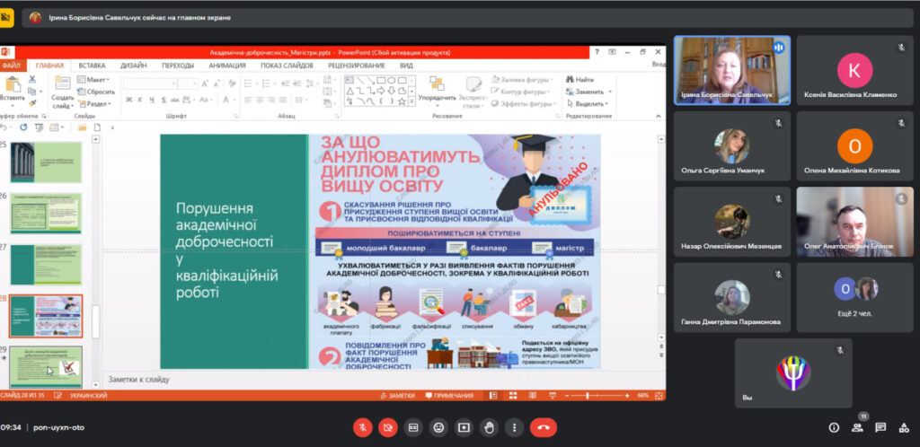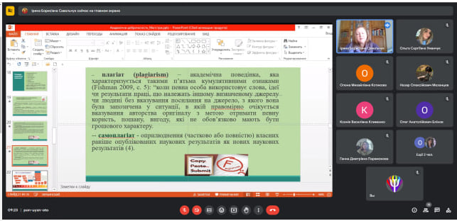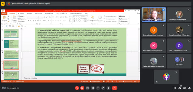 Лектор зауважила на важливості дотримання академічної доброчесності як показника високої особистої культури кожного учасника освітньо-наукового процесу.
