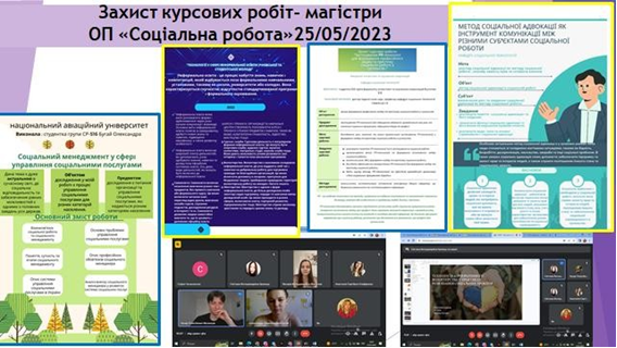 25 травня  2023 року магістри групи СР 116м освітньо-професійної програми «Соціальна робота» провели захист своїх курсових робіт з навчальної дисципліни «Інноваційні методи соціальної роботи»