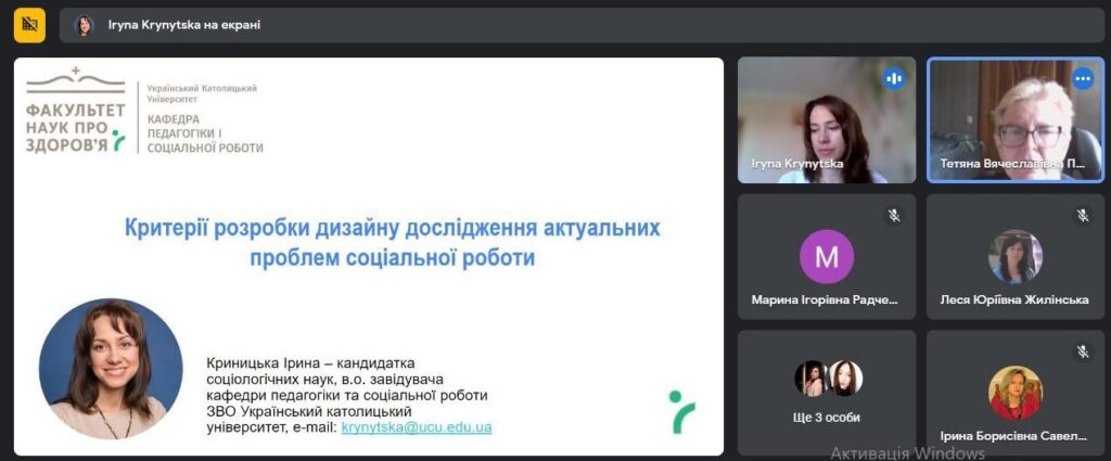 До участі була запрошена Криницька Ірина Петрівна, канд. соціолог. наук, доцент кафедри педагогіки та соціальної роботи Українського католицького університету (м. Львів).