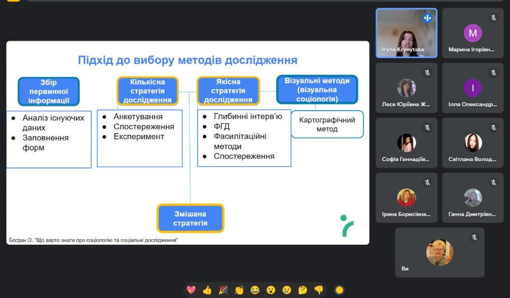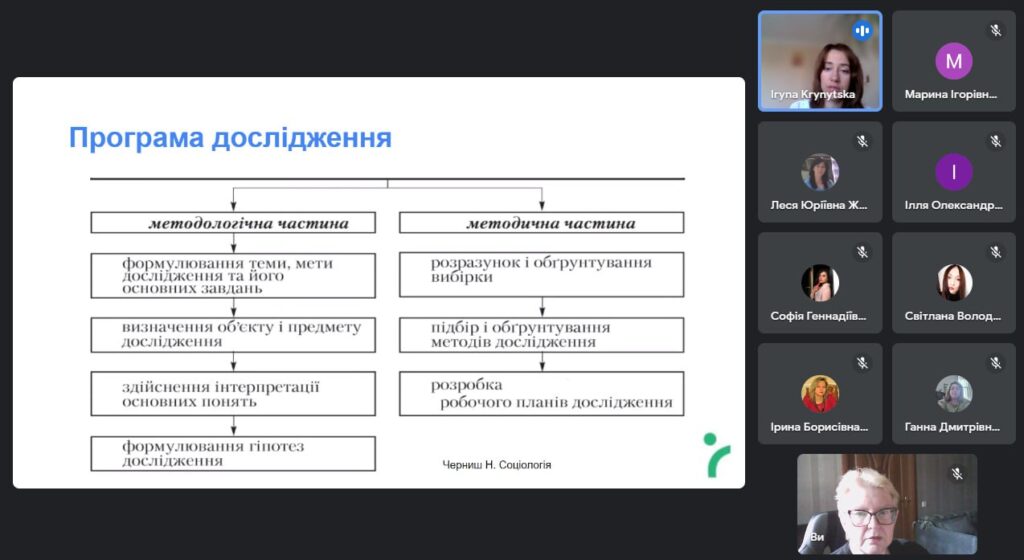Присутні розглянули питання вибору теми дослідження, підготовки програми, вибору методів і дизайну роботи.