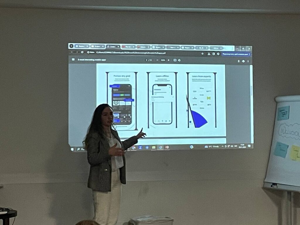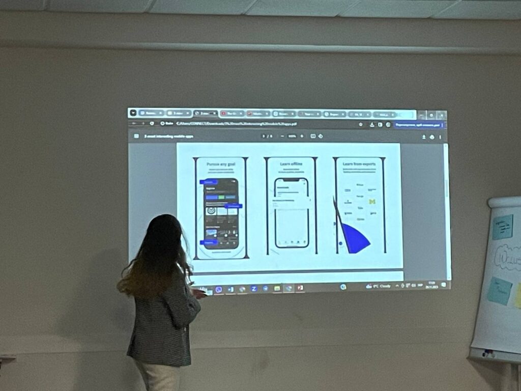В рамках тренінгу, Аріана разом з командою мала завдання представити три сучасні додатки та розказати про свою країну, які активно використовуються українськими студентами у їх навчальному процесі. Одним з таких додатків, який Аріана представила, є відомий освітній портал Coursera.