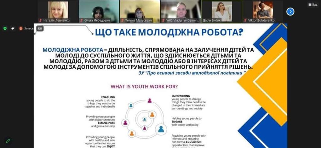 Під час свого виступу Ірина Савельчук ознайомила присутніх із наявними механізмами забезпечення активізації громадських ініціатив в контексті соціального відновлення молоді. Спікер Дар’я Бибик поділилася успішними кейсами розвитку соціального лідерства студентської молоді в умовах ЗВО та сучасними викликами молодіжної роботи.