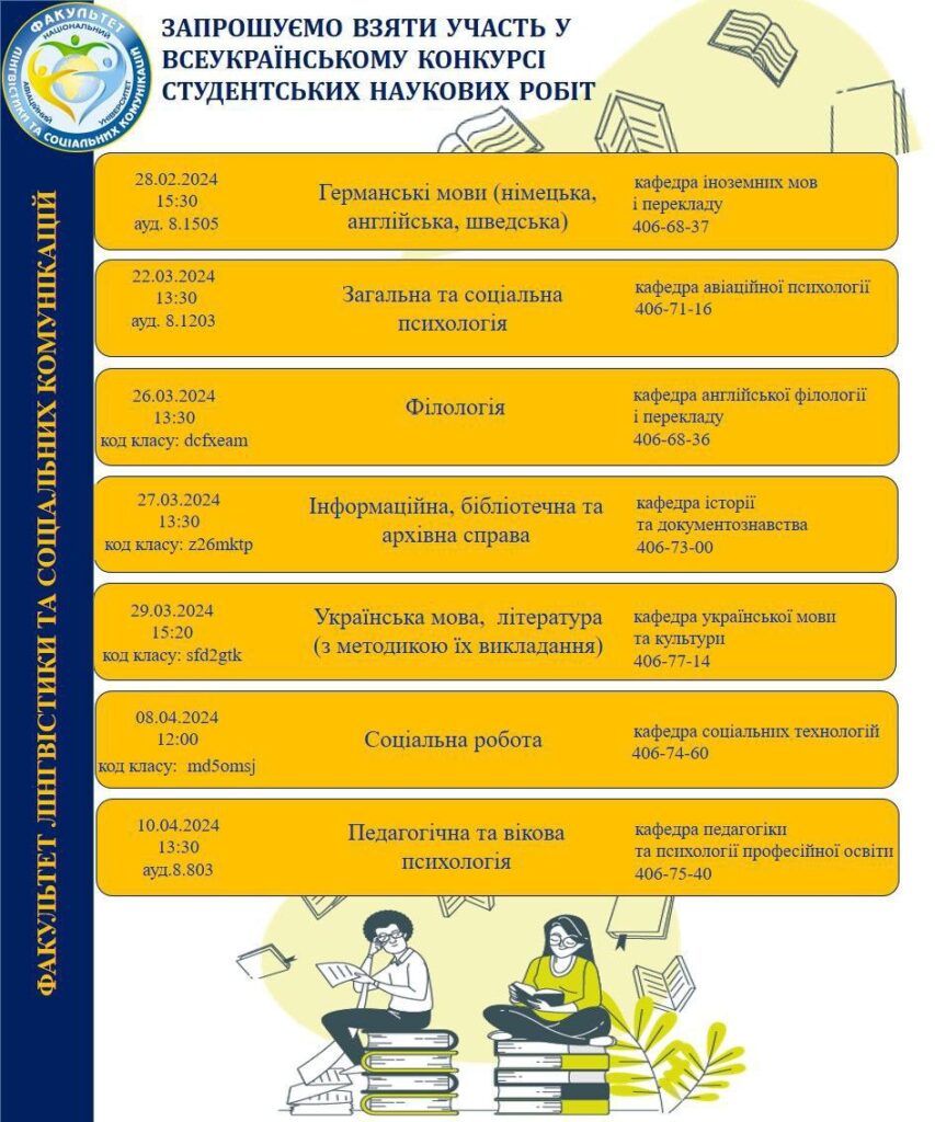 Ці заходи є чудовою можливістю для студентів, аспірантів, молодих вчених, а також для всієї наукової спільноти обмінятися досвідом, представити результати своїх досліджень та розширити професійні горизонти. Факультет лінгвістики та соціальних технологій запрошує всіх бажаючих долучитися до цих заходів, щоб разом сприяти розвитку науки та освіти.