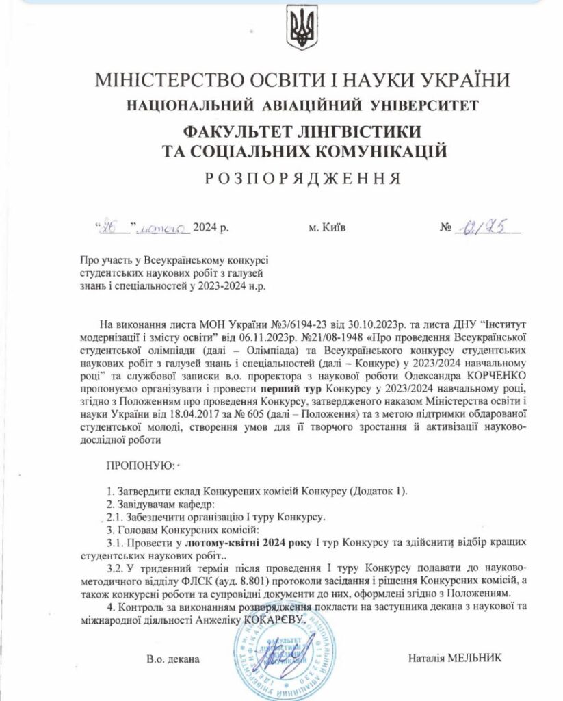 8 квітня 2024 року о 12.00 розпочнеться Всеукраїнський конкурс студентських наукових робіт з галузей знань і спеціальностей у 2023-2024 навчальному році, І тур. Цей конкурс стане випробувальним майданчиком для студентів, що демонструють свої наукові досягнення та інноваційні ідеї.