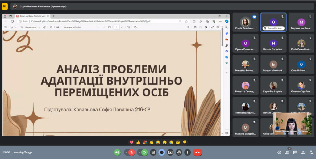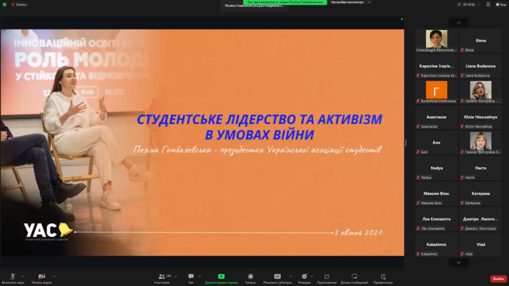 Пленарне засідання зібрало виступи видатних молодих вчених, серед яких були Євгенія Шелест з доповіддю “Стійкість через мережування: досвід ГО ‘Прогресильні'”, Поліна Гомбалевська, яка говорила про “Студентське лідерство та активізм в умовах війни”, Марія Артеменко з презентацією “Інтерактивне знайомство з аудиторією: мистецтво створення презентації”, та Маргарита Кудінова, яка представила “Дорожню карту ресурсів підтримки ментального здоров’я”.