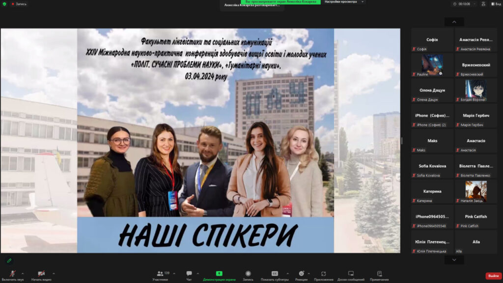 03 квітня 2024 року, на Факультеті лінгвістики та соціальних комунікацій, відбулося урочисте відкриття Міжнародної науково-практичної конференції здобувачів вищої освіти і молодих вчених “Політ-2024”. Захід відкрили в.о.проректора Марина Петченко, в.о. декана Наталя Мельник, та заступник декана з міжнародної діяльності Анжеліка Кокарева, які наголосили на актуальності сучасних проблем науки.