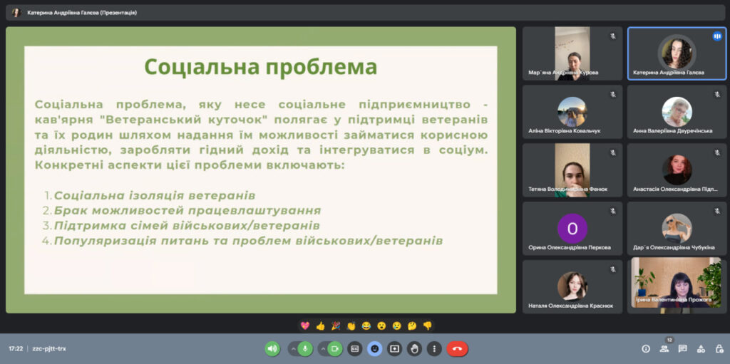 9 квітня 2024 року кампус забурлив від енергії та інновацій, коли здобувачі вищої освіти четвертого курсу дисципліни “Соціальне підприємництво” захищали свої заключні проєкти. Під керівництвом доцентки, кандидата економічних наук Ірини Валентинівни Прожоги, студенти демонстрували не лише свої академічні знання, а й здатність реалізувати реальні зміни у суспільстві через креативні та практичні ідеї.