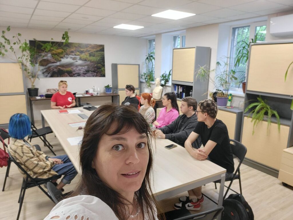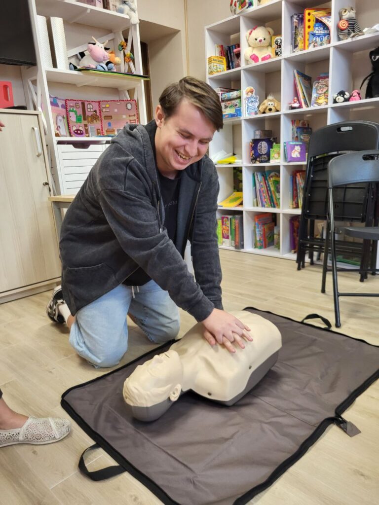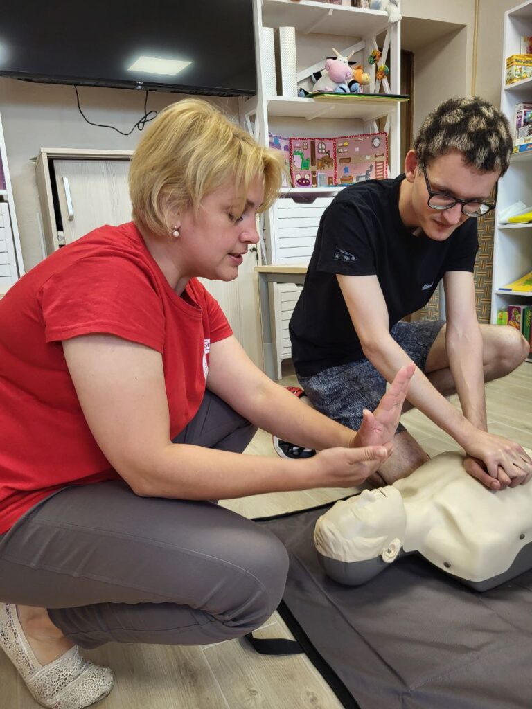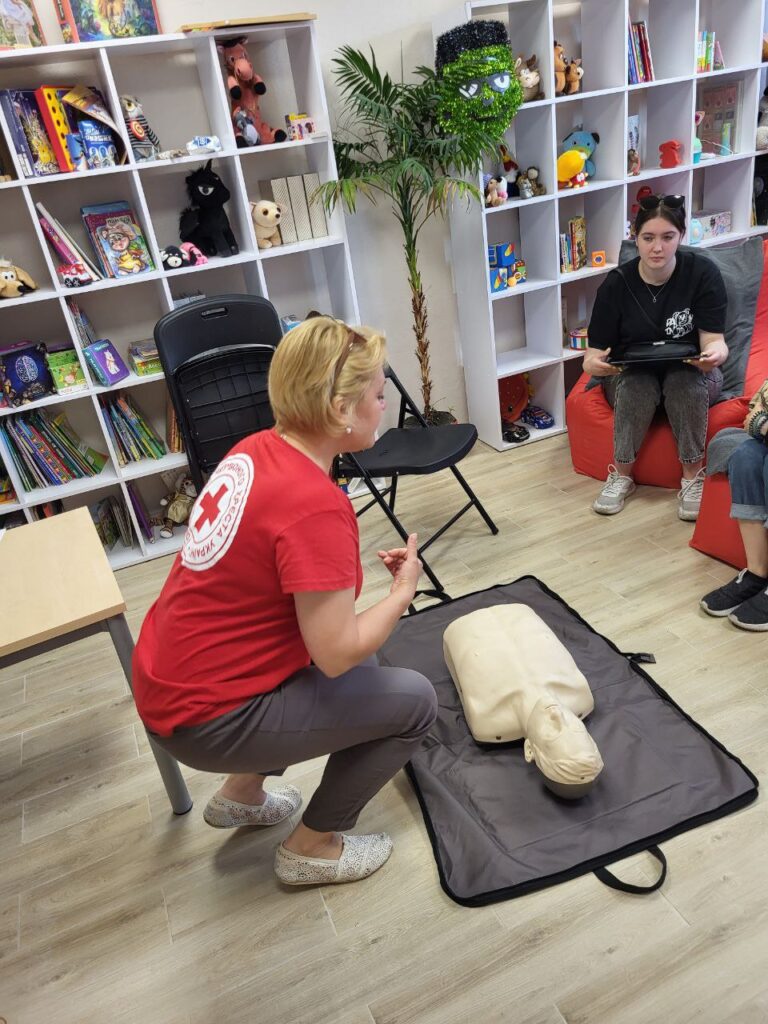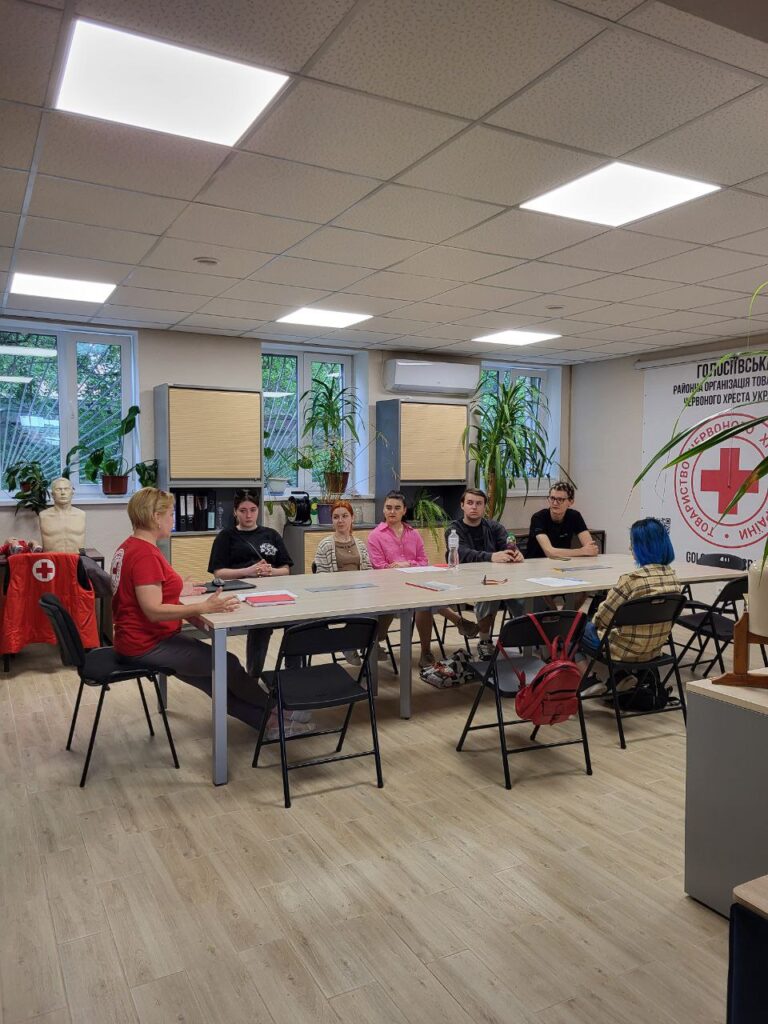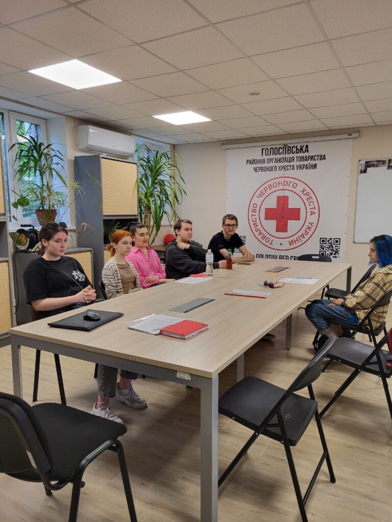 Перший день практики в Голосіївській районній організації Товариства Червоного Хреста України в Києві розпочався зі знайомства студентів з головою організації Світланою Олексіївною Родіною. Вона розповіла студентам про діяльність Товариства Червоного Хреста, методи надання волонтерської допомоги та провела практичне заняття з надання першої медичної допомоги на манекені. Студенти активно брали участь у навчанні та з великим задоволенням опановували нові навички.