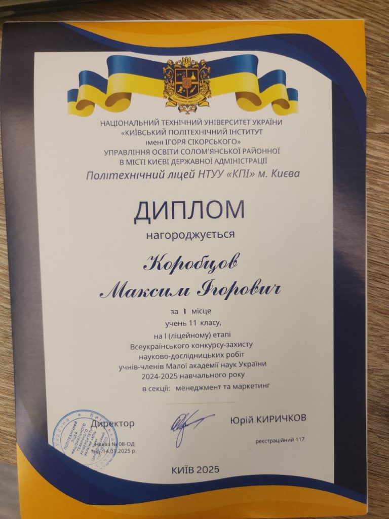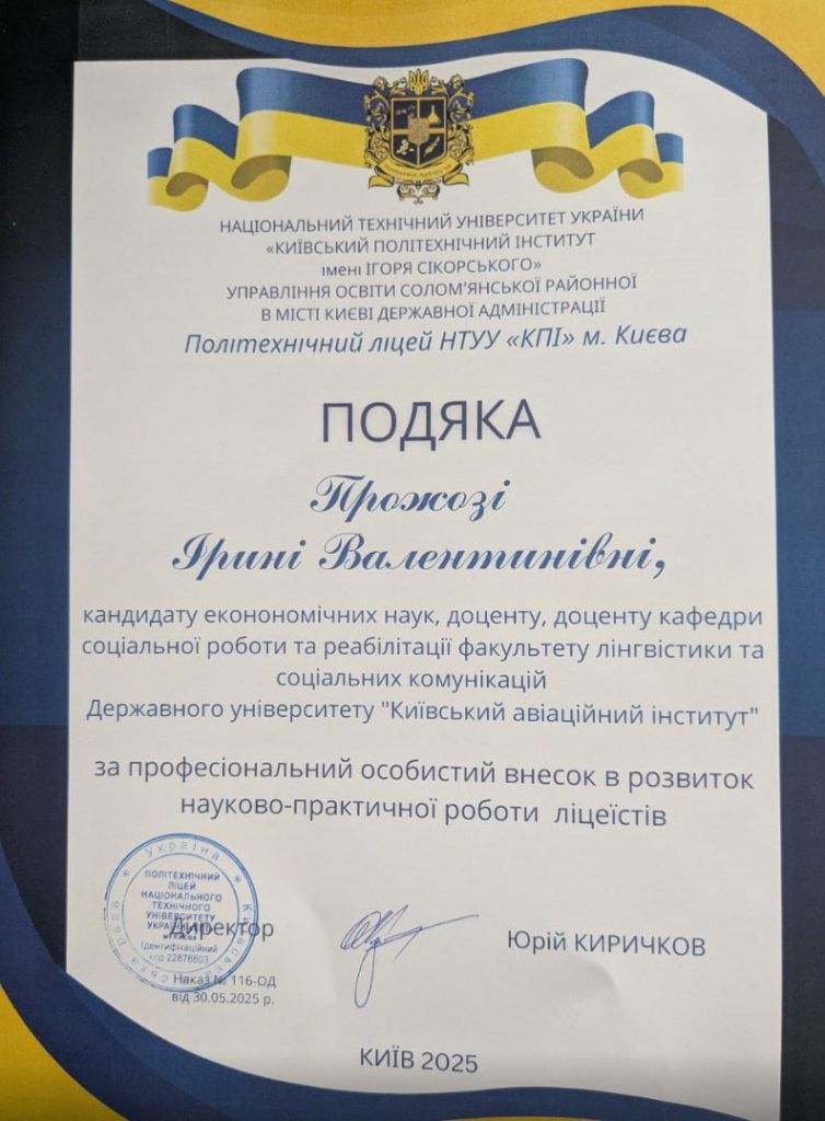 Цей результат є яскравим прикладом ефективної співпраці між кафедрою соціальної роботи та реабілітації та Політехнічним ліцеєм НТУУ “КПІ”, яка сприяє розвитку молодих дослідників та впровадженню інновацій у сферу освіти.