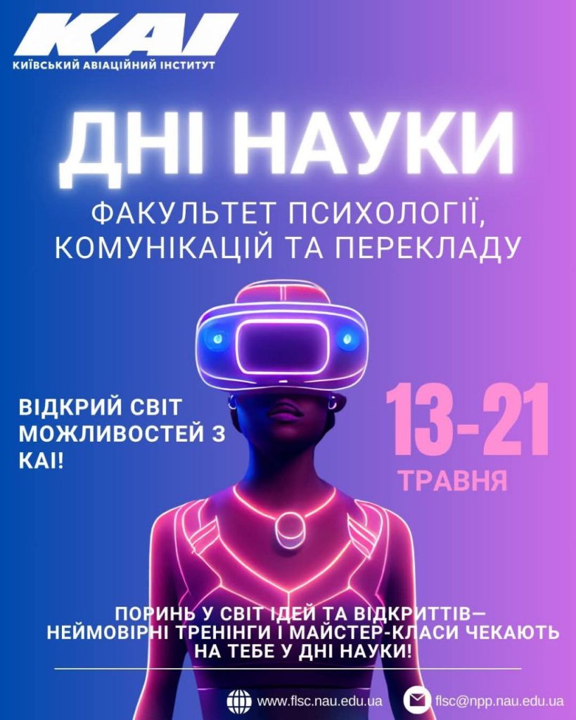 14 травня 2025 року в Державному університеті «КАІ» на факультеті психології, комунікацій та перекладу відбулося урочисте привітання з нагоди Дня науки — щорічного свята, яке вшановує досягнення науковців і сприяє розвитку наукової культури в університетському середовищі.