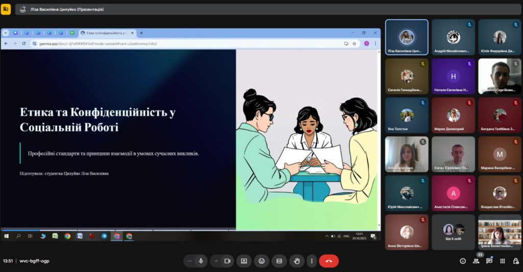 Незважаючи на воєнний стан, перебої зі зв’язком та інтернетом, кафедральний захід відбувся на високому організаційному та науковому рівні. Це засвідчило стійкість академічної спільноти та відданість викладачів і студентів справі розвитку соціальної роботи навіть у складних реаліях сьогодення.