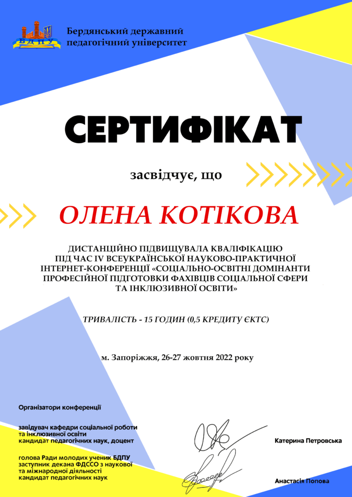 Кафедра соціальної роботи та реабілітації щиро вітає здобувачку вищої освіти І рівня (бакалавр) КОВАЛЬОВУ Софію з перемогою у грантовому конкурсі