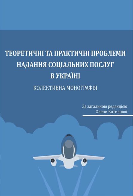 Теоретичні та практичні проблеми надання соціальних послуг в Україні: монографія / [Котикова О., Блінов О., Радченко М. та ін.]; за заг. ред. О. Котикової. Київ: Видавець Кравченко Я.О., 2023. 324.с. У монографії розглядаються теоретичні та практичні проблеми щодо організації та впровадження соціальних послуг в Україні. Проаналізовано закономірності розвитку соціальної сфери трансформаційного суспільства. Визначено особливості підвищення ефективності надання державних послуг у соціальній сферіУкраїни у воєнний час. Окреслено перспективи впровадження сучасних методів та технологій підготовки майбутніх соціальних працівників. Обгрунтовано модель формування психолого-педагогічної компетентності майбутніх соціальних працівників та надано рекомендації щодо використання ресурсів освітнього процесу для оптимізації підготовки фахівців до надання соціальних послуг.