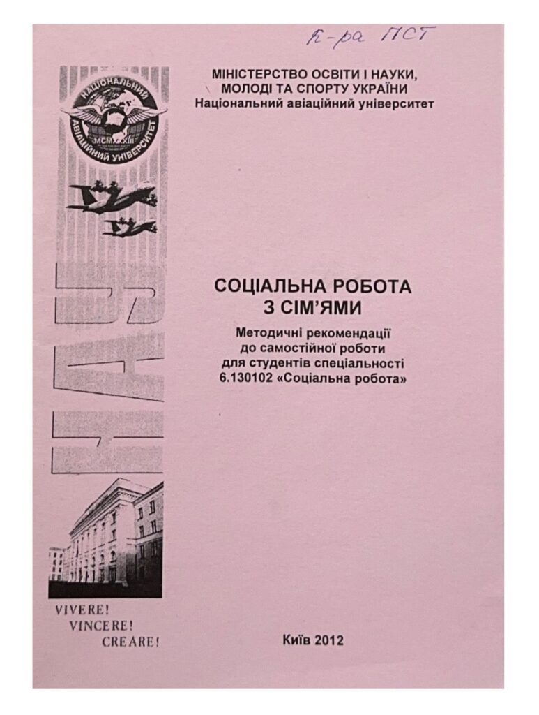 Соціальна робота з сімʼями : методичні рекомендації до самостійної роботи / уклад. Н. Г. Ісхакова. – К. : НАУ, 2012. – 52 с. Містять перелік лекційних тем до кожного модуля, плани практичних занять, методичні рекомендації до їх підготовки, а також список літератури. Для студентів спеціальності 6.130102 «Соціальна робота».