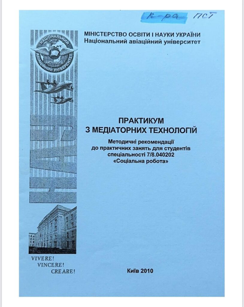 Практикум з медіаторних технологій: методичні рекомендації до практичних занять / уклад. О.В. Бичко. – К.: Вид-во Нац. авіац. ун-ту «НАУ-друк», 2010. – 32 с. Методичні рекомендації з навчального курсу «Практикум з медіаторних технологій» зорієнтовані на ознайомлення студентів з питаннями, які обговорюють на практичних заняттях та вивчають під час виконання контрольних робіт. Практичні заняття, як форма активного навчання, спрямовані на формування інструментально-операційних професійних здібностей майбутнього фахівця у сфері професійної соціально-психологічної допомоги клієнтам соціальної роботи. Для студентів спеціальності 7/8.040202 «Соціальна робота».