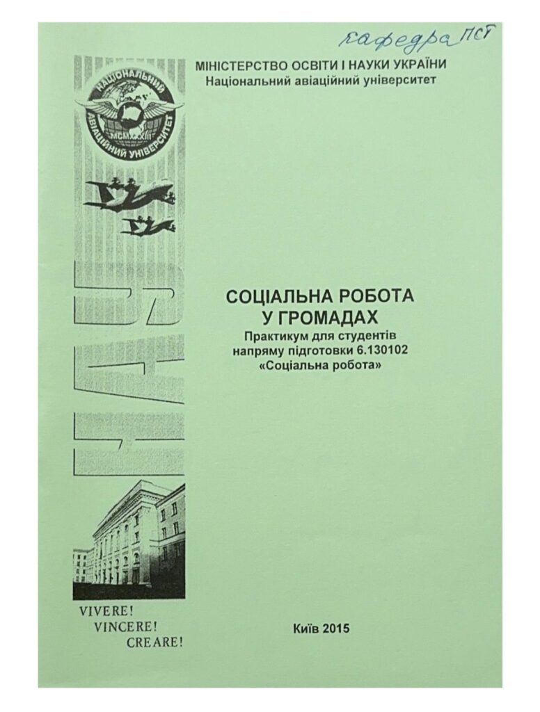 Соціальна робота у громадах: практикум / уклад. Т. В. Петренко. – К. : НАУ, 2015. – 52 с. Видання включає перелік лекційних тем до кожного модуля, матеріали для практичних занять, питання для контролю і самоконтролю, тематику рефератів, методичні рекомендації щодо організації самостійної роботи студентів, словник основних термінів і понять, список літератури. Для студентів напряму підготовки 6.130102 «Соціальна робота».