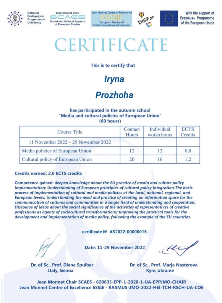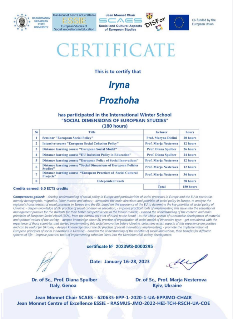 Кафедра соціальної роботи та реабілітації щиро вітає здобувачку вищої освіти І рівня (бакалавр) КОВАЛЬОВУ Софію з перемогою у грантовому конкурсі