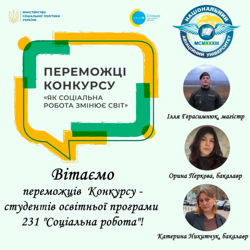 Переможці конкурсу освітньої програми 231 «Соціальна робота» «Як соціальна робота змінює світ» Міністерства соціальної політики України (у партнерстві з Дитячим фондом ООН (ЮНІСЕФ))